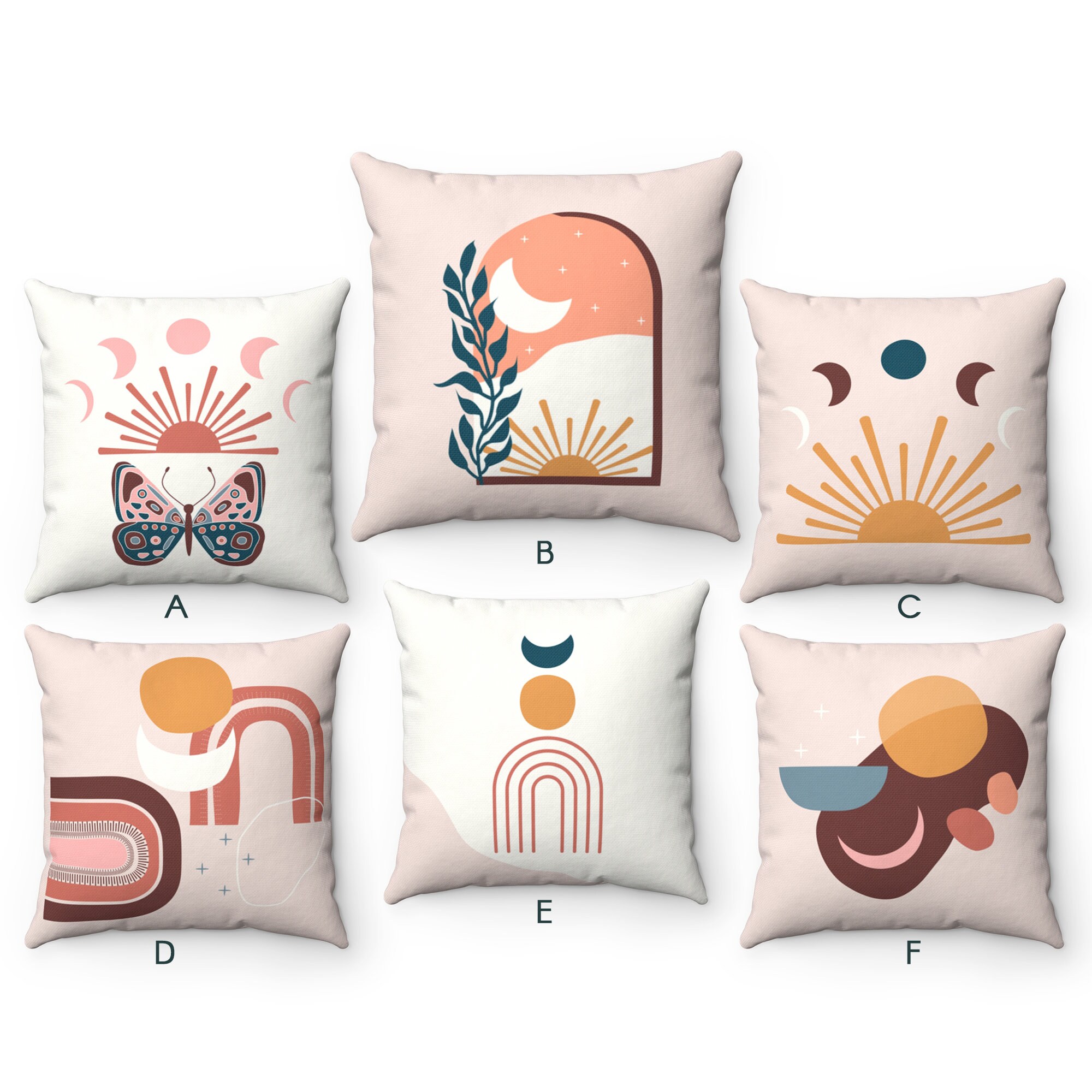 Mid Century Modern Sun Moon Butterfly Throw Pillow Case Set Etsy Hong Kong
